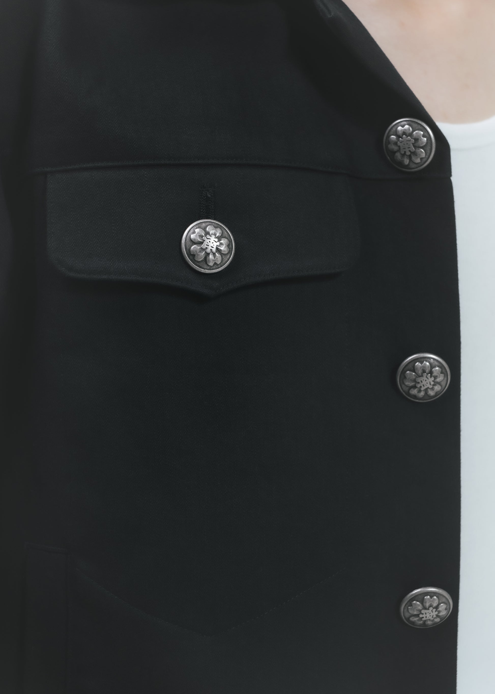 Designed with original metal shank buttons inspired by the gakuran, the traditional Japanese school uniform, featuring a Sakura and the character “MINAMI”.